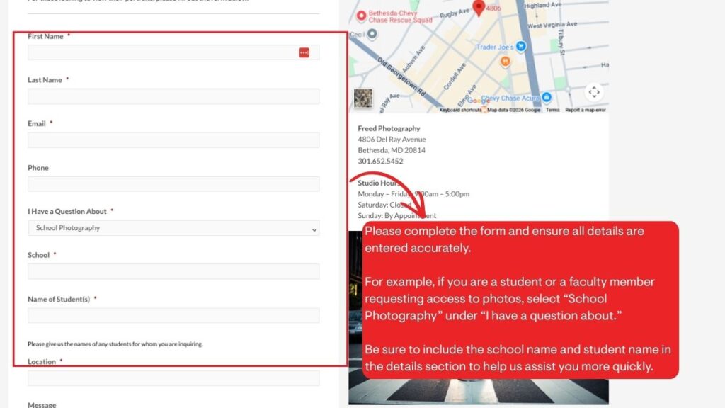 To retrieve your password and access your photos, please complete the form on this page: